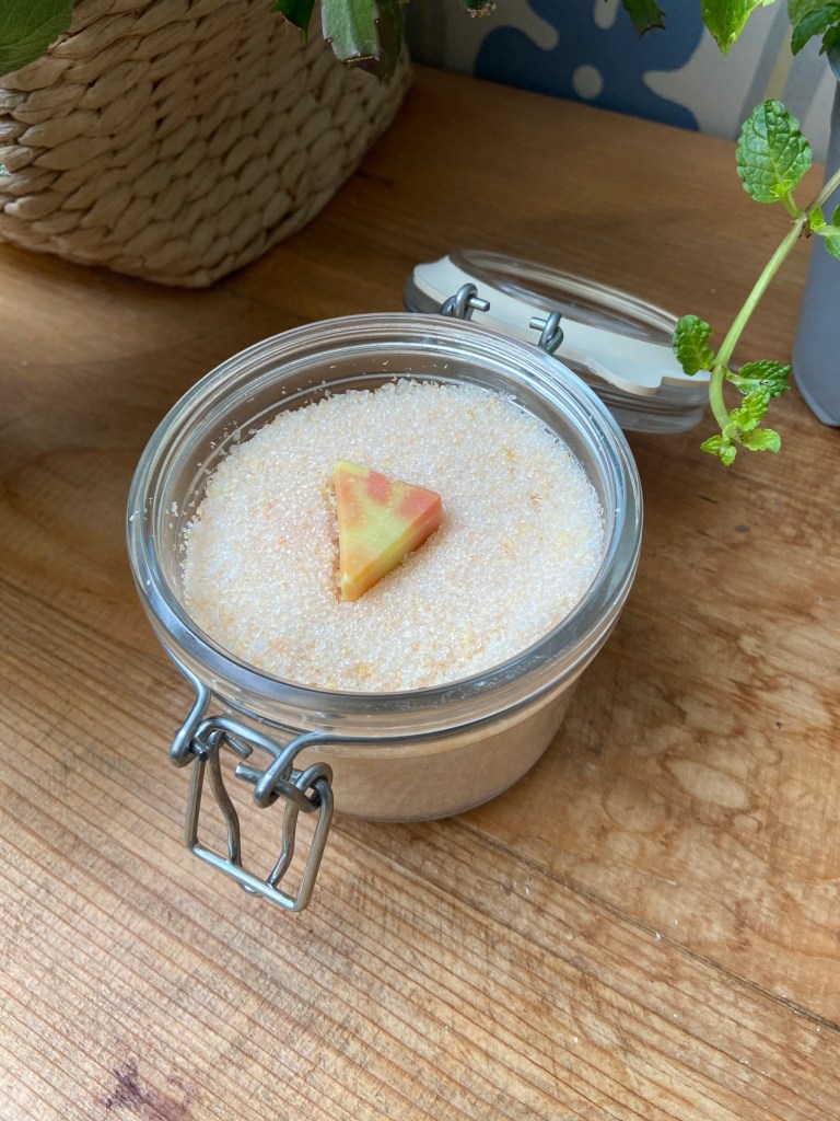 Cosa contiene: Sali del Mar Morto, olio essenziale all’arancio, al limone e al rosmarino. Scaglie e polvere di sapone agli agrumi.